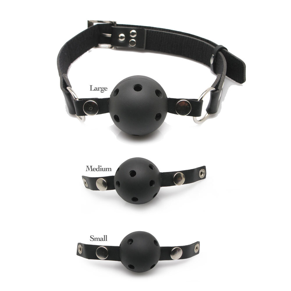 The 3-gag training system allows you to start with a small gag and gradually work your way up to the larger one – and go from mild to wild as you progress! Each gag is interchangeable using the snaps, made from non-toxic plastic and fitted with holes to make breathing easy.